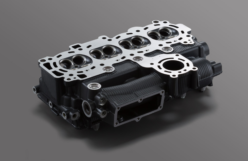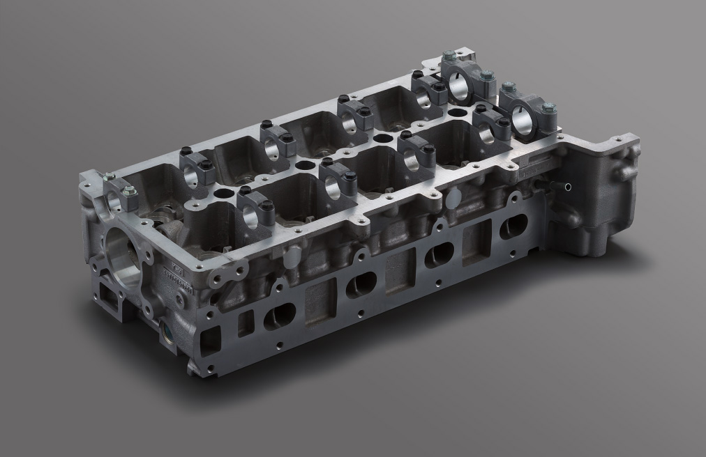 Đối với xy lanh đúc theo kỹ thuật sử dụng trọng lực, Yamaha sử dụng hợp kim nhôm AC4C (hợp kim nhôm – silicon – magie), kết hợp với sử dụng nước làm mát tại khu vực khoang buồng đốt đầu xy lanh. Kết quả là xy lanh có cấu trúc chi tiết phức tạp, kết hợp tốt giữa độ giãn nở và độ bền. Đầu xy lanh đúc trọng lực giúp hạn chế việc hình thành các vết nứt giữa van nạp và van xả nên được ứng dụng trong cả động cơ diesel và động cơ xăng hiệu suất cao. Phương pháp này cho phép sản xuất các đầu xy lanh bằng nhôm và giảm trọng lượng cho động cơ diesel, điều mà trước đây rất khó thực hiện.