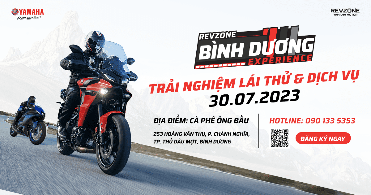 Trải nghiệm ngay sản phẩm và dịch vụ vượt trội của Revzone Yamaha Motor với ngày hội Lái thử & Trải nghiệm dịch vụ ngày 30/07/2023 với nhiều hoạt động hấp dẫn dành cho anh chị em Biker tại thành phố Thủ Dầu Một, Bình Dương.