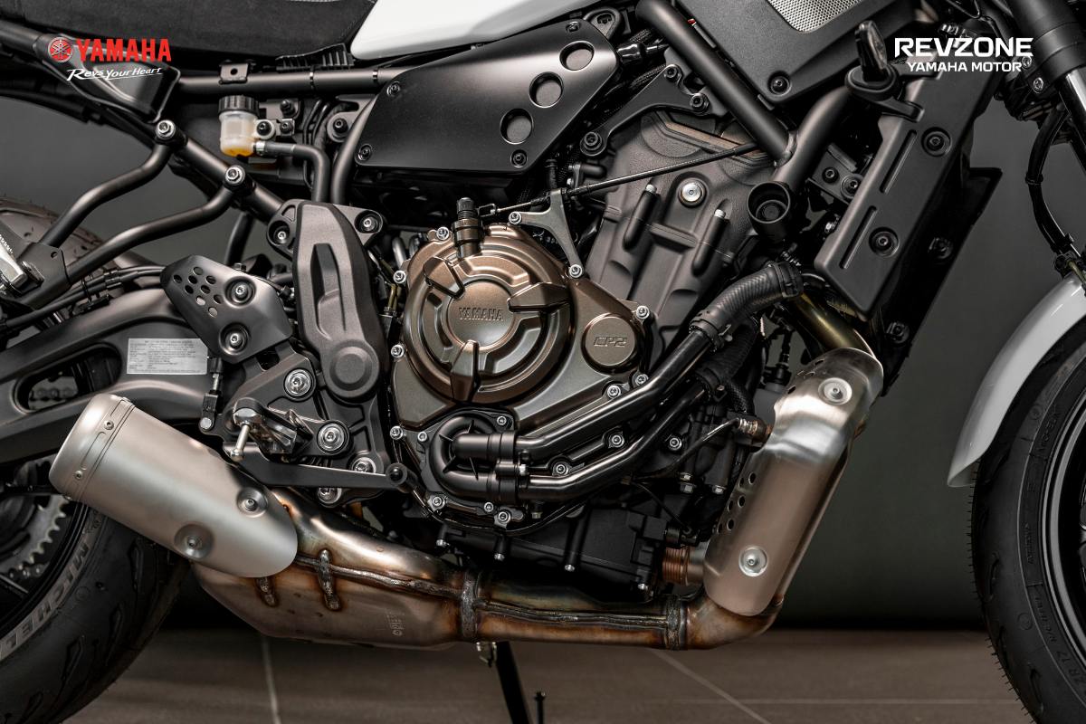 Đặc tính sức mạnh của động cơ này thể hiện qua momen xoắn vượt trội ở dải vòng tua thấp đến trung bình và phản ứng bướm ga tuyến tính, đồng thời cung cấp sức kéo mạnh mẽ ở vòng tua máy cao. Yamaha XSR700 phiên bản mới còn được bổ sung bộ đối trọng giảm rung, giúp khối động cơ hoạt động êm ái và mượt mà hơn.