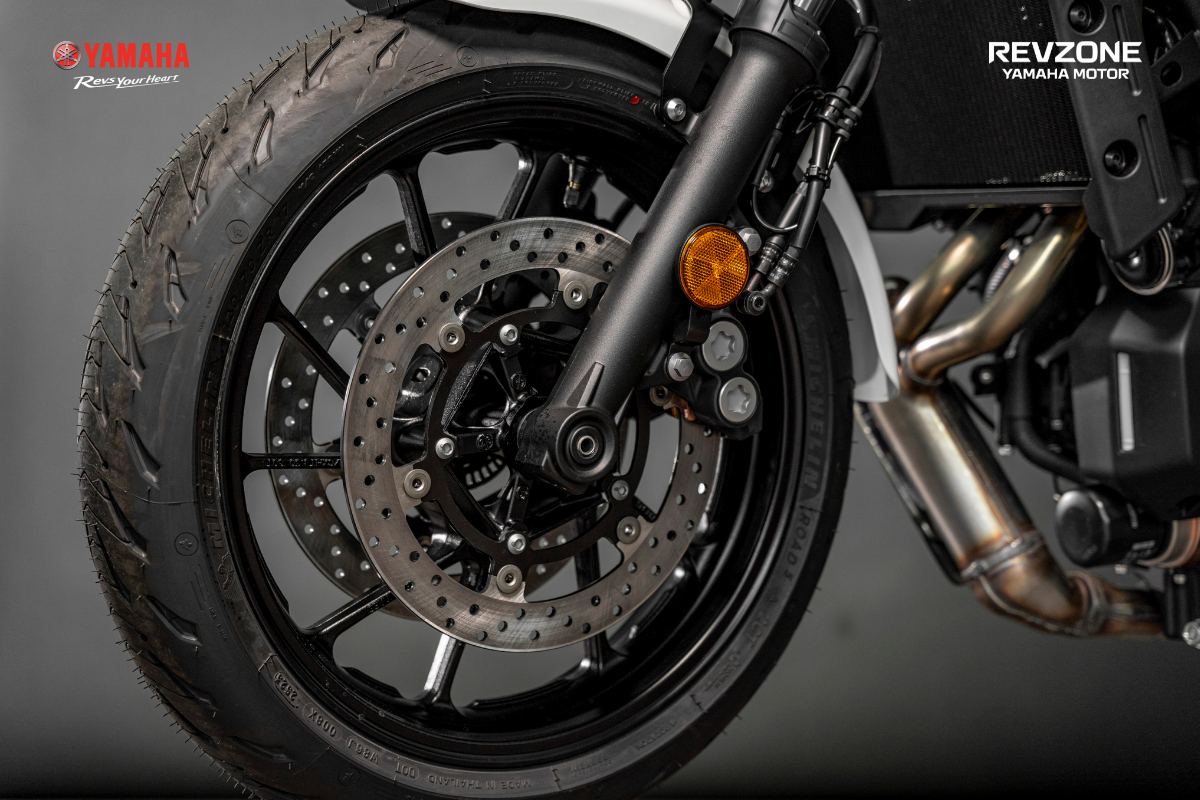 Ngoài ra, XSR700 được trang bị bộ lốp Michelin Road 5, 120/70ZR17 phía trước và 180/55ZR17 phía sau. Bánh xe bằng nhôm đúc 10 chấu tăng khả năng xử lý và tự tin vận hành trong nhiều điều kiện khác nhau.