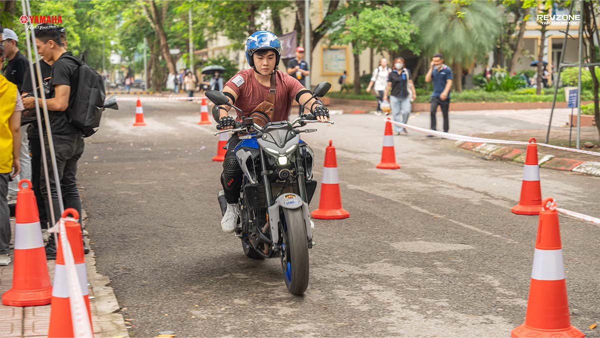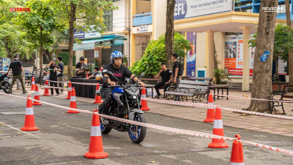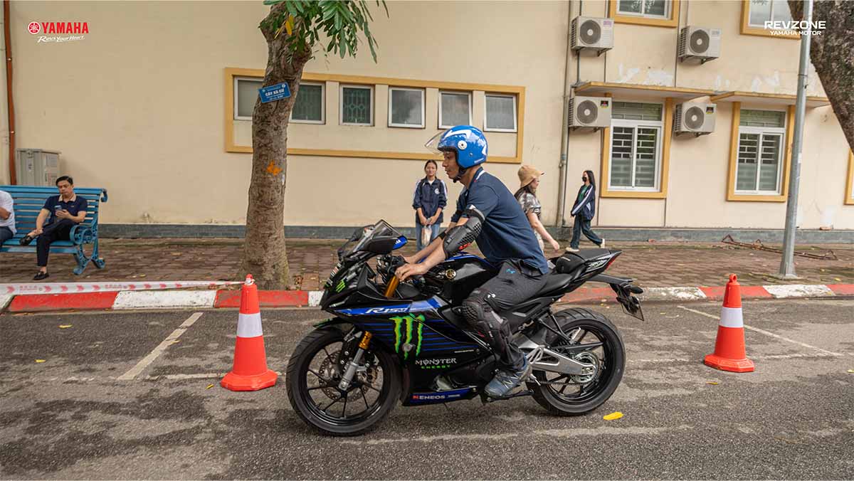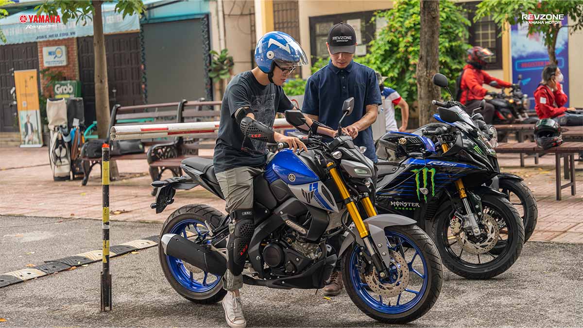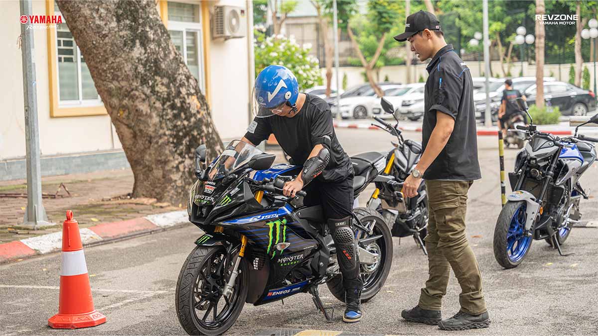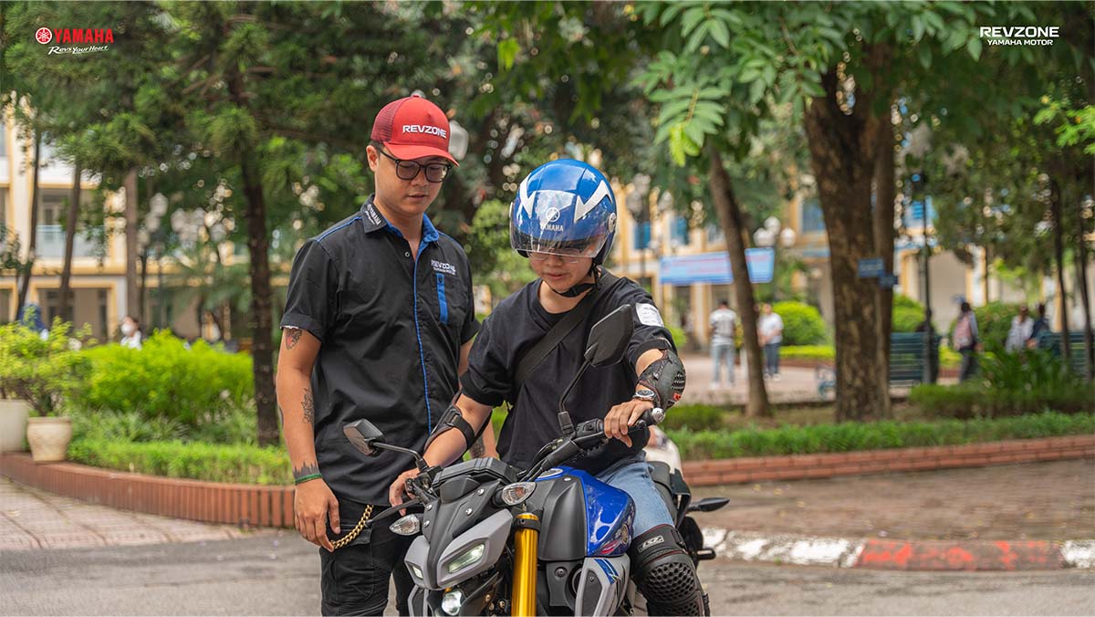 Điều làm đa số anh em biker trẻ hài lòng và ấn tượng nhất đó chính là sự nhiệt tình của các anh chị hướng dẫn lái thử tại sự kiện, Revzone Yamaha Motor ghi nhận được tinh thần tốc độ và niềm yêu thích các mẫu xe mô tô thể thao Yamaha từ phía các bạn sinh viên tuy nhiên khá nhiều biker có kỹ thuật sử dụng xe tay côn còn yếu. Chính vì vậy, để đảm bảo cho trải nghiệm lái thử an toàn và trọn vẹn nhất, những khóa học điều khiển xe tay côn “cấp tốc” đã được nhân viên của Revzone hướng dẫn các bạn sinh viên cẩn thận.