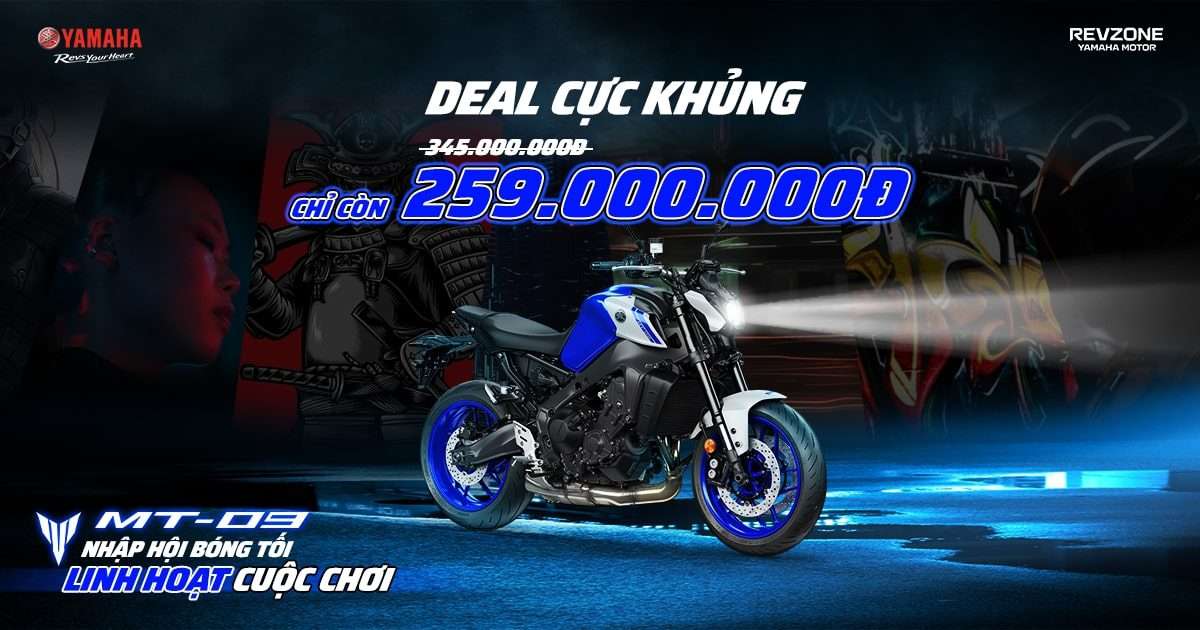 Khuyến mãi chào năm mới từ ngày 22/12/2023 đến 30/01/2024 – cực sốc! Hãy tận dụng cơ hội đặc biệt này để sở hữu ngay Yamaha MT-09 với mức giá chỉ còn 259 triệu đồng cùng nhiều quà tặng giá trị khác.