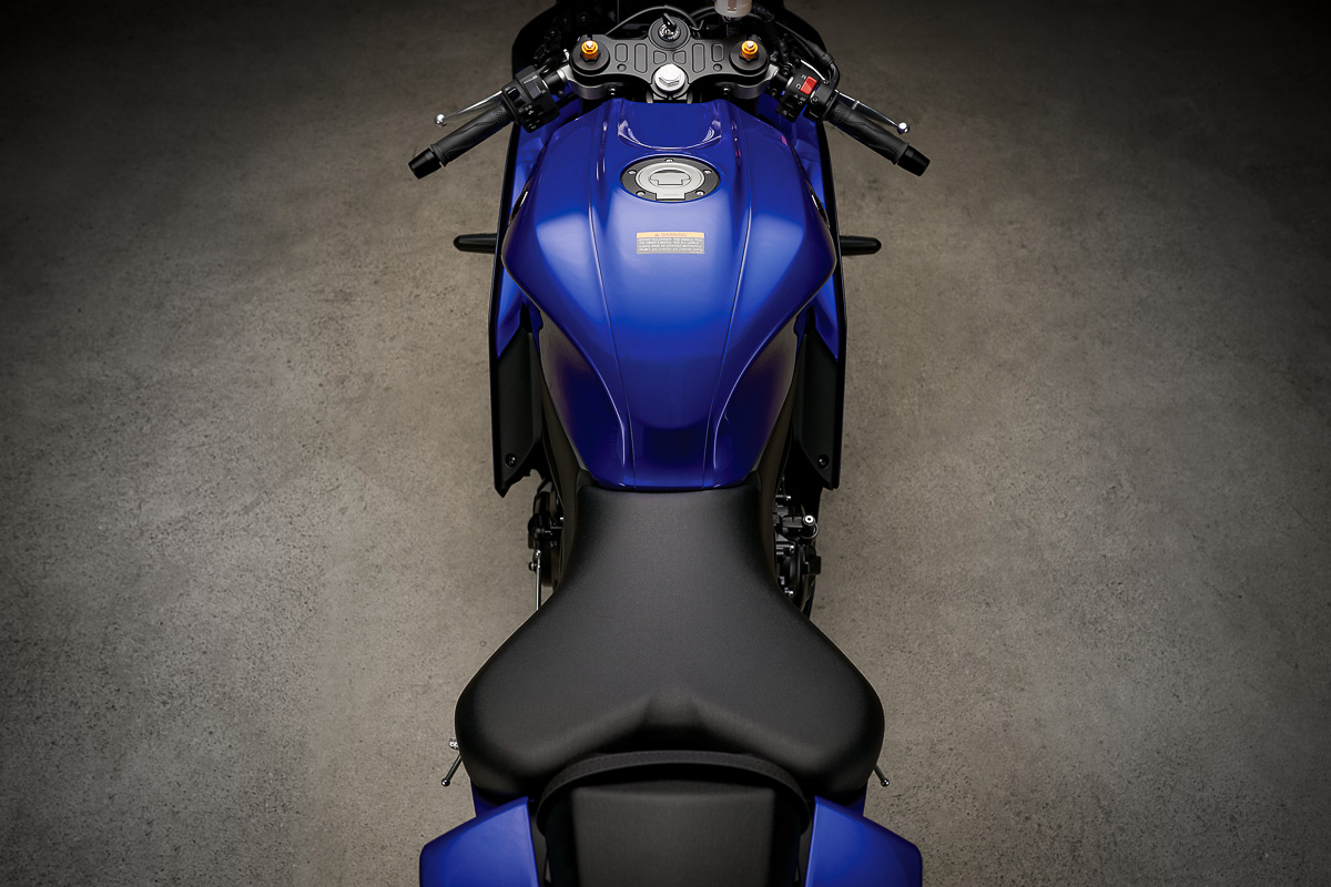 Yamaha R7 còn có thiết kế thanh thoát với chiều ngang ngắn nhất trong gia đình R-series. Bình xăng và yên xe được thiết kế hẹp và sắp xếp một cách hợp lý, giúp giảm lực cản và tối ưu hóa luồng không khí thoát ra phía sau xe. Đuôi xe cũng được vuốt sắc cạnh, giúp giảm thiểu nhiễu động của luồng khí và cải thiện độ ổn định ở tốc độ cao.