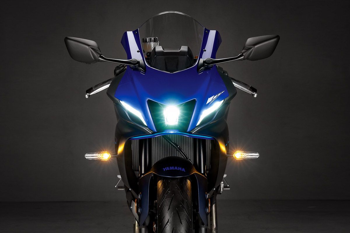 Sở hữu DNA supersport của dòng xe R-series nổi tiếng, Yamaha R7 được thiết kế đặc biệt để giảm sức cản của gió và cải thiện độ ổn định ở tốc độ cao. Ở phần đầu xe, khe hút gió với tạo hình chữ M lớn được thiết kế để giảm sức cản không khí xung quanh xe. Đồng thời, phần đầu xe nhọn cùng kính chắn gió nhỏ giúp điều hướng luồng không khí ôm theo tư thế của người lái.