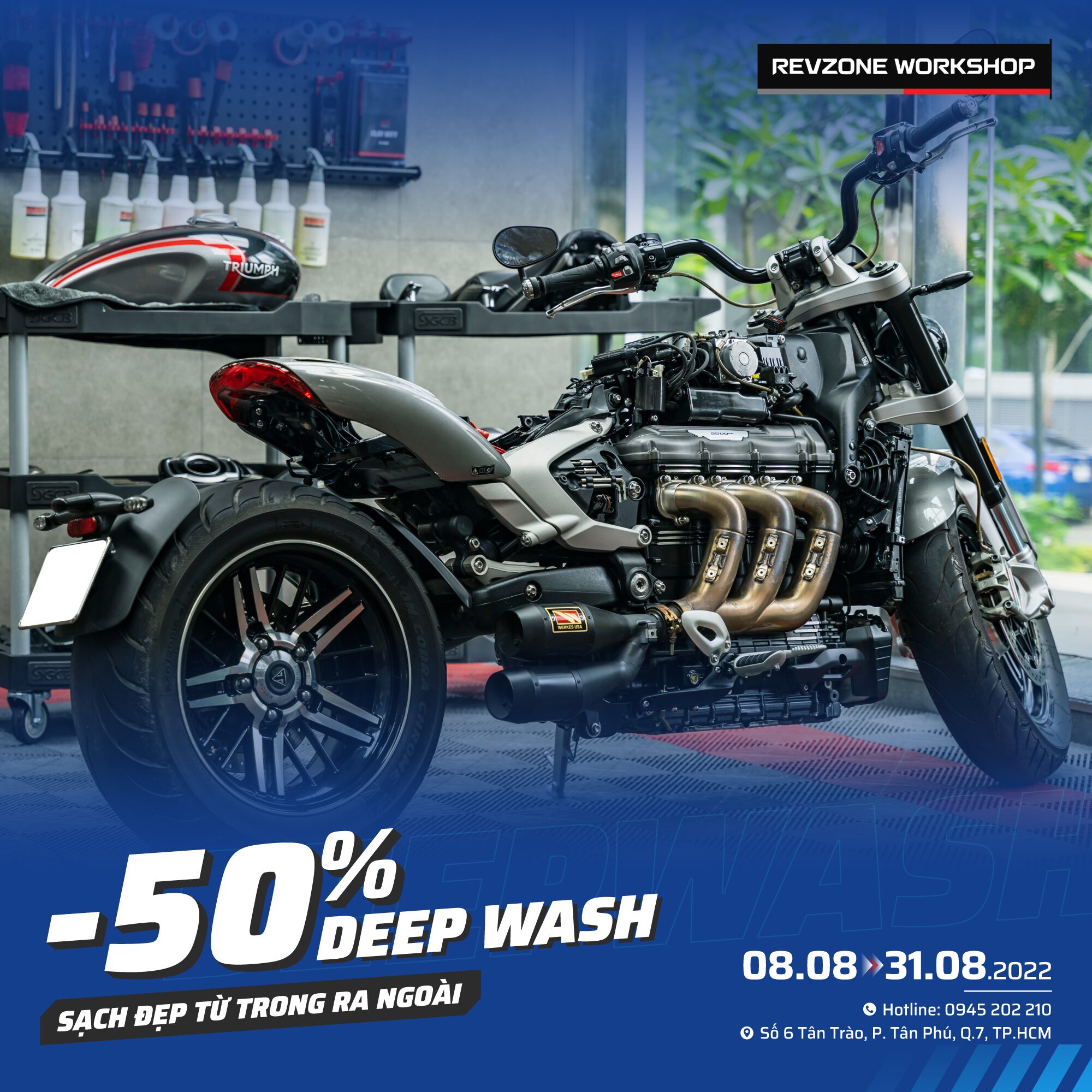 Deep Wash là gói rửa xe cao cấp nhất tại xưởng dịch vụ nhằm vệ sinh sạch sẽ xe từ trong ra ngoài, có các đặc điểm nổi bật như tháo dàn áo, vệ sinh khu vực khoang máy; sử dụng lên đến 10 loại dung dịch tẩy rửa và dưỡng bảo vệ chuyên dụng; loại bỏ bụi bẩn để xe tản nhiệt tốt nhất; và gia tăng tuổi thọ các chi tiết và động cơ.
