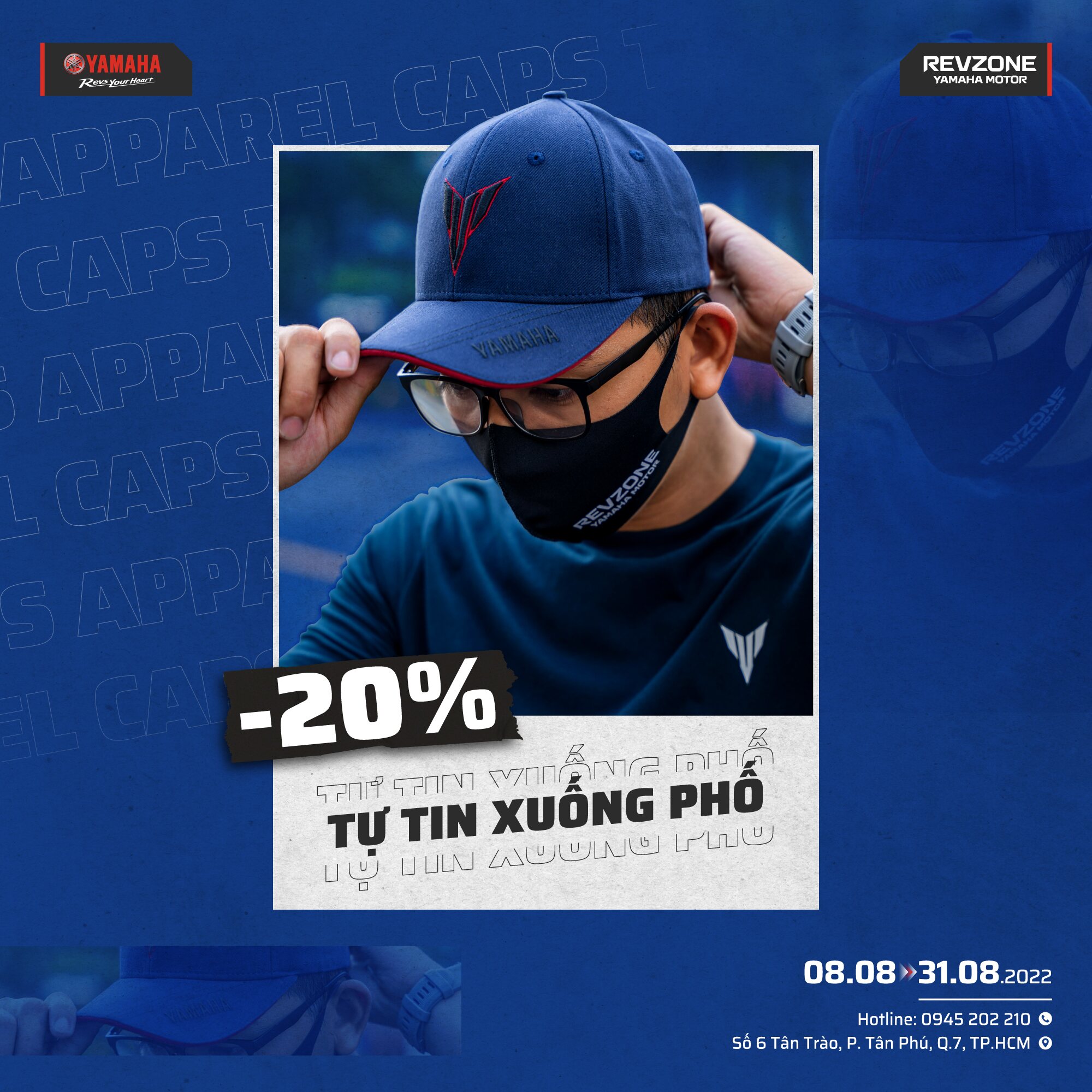 Bên cạnh đó, nếu anh chị em Biker yêu thích những thiết kế thể thao và trẻ trung của Yamaha thì đừng bỏ lỡ cơ hội mua sắm với ưu đãi 20% trong tháng 8 này nhé! Những mẫu áo thun và nón với thiết kế tuy đơn giản nhưng không kém phần năng động, mang đến cảm giác tự tin, thoải mái mỗi khi dạo phố hay trong bất kì hoàn cảnh nào.