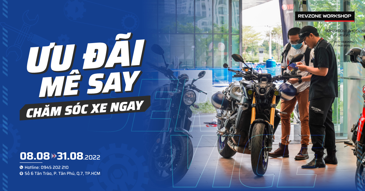 Thổi bùng không khí sôi động tháng 8 với loạt ưu đãi hấp dẫn dành cho khách hàng sử dụng dịch vụ chăm sóc xe và mua sắm sản phẩm thời trang tại Revzone Yamaha Motor.