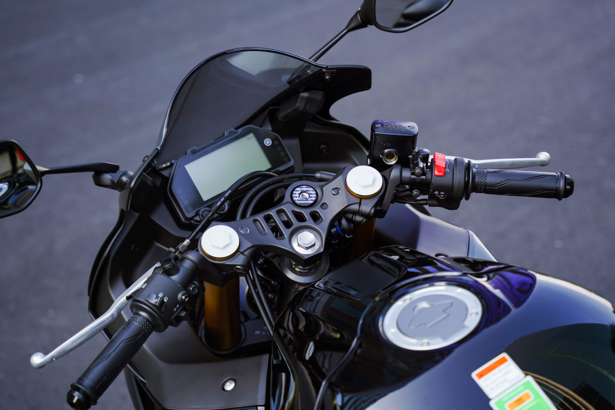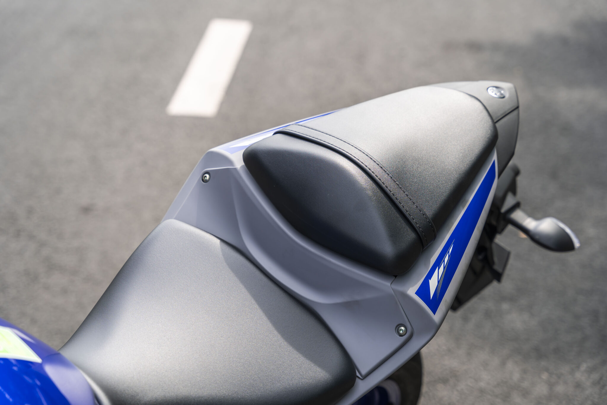 Ghi-đông clip-on và phần bình xăng vót thọn gọn giúp R3 có một tư thế lái thể thao và dễ dàng núp gió sau dàn áo đậm chất khí động học, nhất là ở tốc độ cao. Tư thế lái thể thao đi tua xa có khi sẽ hơi mỏi nhưng nếu các anh em muốn làm quen với đường track hay ôm cua thì đây là thiết kế vô cùng phù hợp. Yên xe phẳng và hẹp, chiều cao yên xe chỉ 780mm phù hợp với đại đa số các anh em Việt Nam.