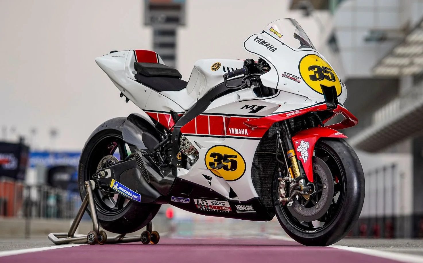 Chiếc YZR-M1 đặc biệt này đã được giới thiệu vào ngày 10 tháng 3 tại buổi chạy thử nghiệm chính thức trước mùa giải ở Qatar với sự tham gia của tay đua Cal Crutchlow. Màu sơn đỏ trắng xuất hiện đại diện cho sự trở lại với truyền thống lẫy lừng của Yamaha và quyết tâm vững chắc để tiếp tục thử thách đua xe trong tương lai. Lần lượt các mẫu xe sau này cũng đã có được khoác lên màu sơn tự hào này.