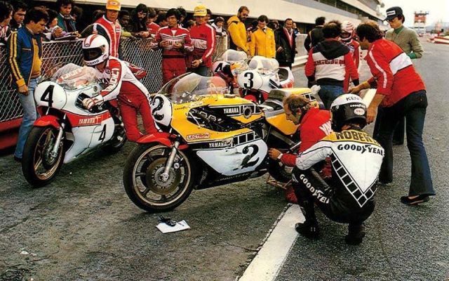 Hai màu sắc khác biệt này cuối cùng đã hợp nhất trong giải đua Grand Prix 500cc năm 1978. Tay đua Kenny Roberts sở dụng chiếc xe màu sơn vàng đen đặc trưng của mình, và người đồng đội Johnny Cecotto sử dụng chiếc xe tương tự nhưng sơn trắng viền đỏ theo truyền thống đua xe của Yamaha, và đặc biệt là cả hai đều sử dụng họa tiết khối dây xích với các khe dọc. Những người hâm mộ đường đua từ đó luôn nhớ rằng tông màu đỏ và trắng là thiết kế truyền thống của một chiếc xe đua Yamaha.