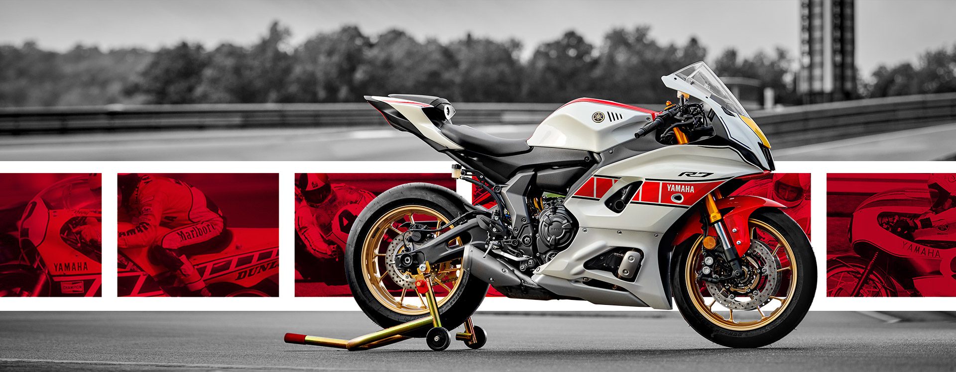 Vào năm 1964, một chiếc xe đua sơn màu trắng sọc đỏ lần đầu tiên xuất hiện dưới nhận diện Yamaha Motor. Sau khi tạm thời rút lui khỏi cuộc đua Grand Prix vào năm 1968, Yamaha trở lại giải đua này vào năm 1973 để bắt đầu một lịch sử tranh tài mới ở hạng đua danh giá nhất 500cc. Cỗ máy YZR500 (0W20) bước vào mùa giải đó có thân xe màu trắng với các đường kẻ đỏ và thiết kế này đã nhanh chóng trở thành màu sơn truyền thống của Yamaha.