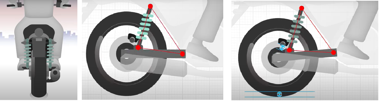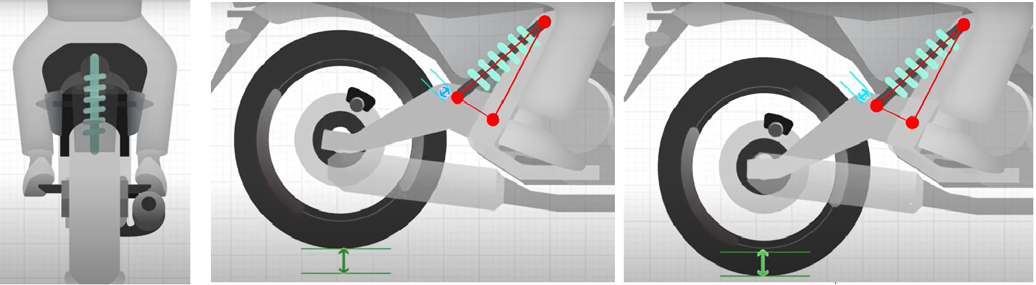 Hệ thống giảm xóc đơn sinh ra giúp làm thiết kế chiếc xe trở nên linh hoạt và gọn nhẹ hơn, góp phần mang lại sự thoải mái và xử lý các tình huống tốt hơn khi lái xe.