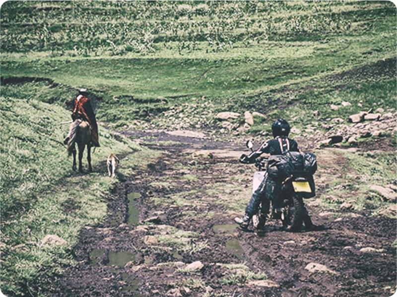 Tại vương quốc Lesotho, cô từng phải vượt qua những đoạn đường mòn băng qua sườn đồi, với quãng đường trông như một mớ bùn lầy. Lớp đất đen dày đặc bám vào lốp xe và tự kết dính giữa bánh sau cũng như gắp xe. Tại Botswana và Namibia, cô mạnh dạn tiến vào địa hình sa mạc, với những cảnh quan cát nâu trải dài khuất tầm mắt. Ngay cả những con đường mòn đầy cát quanh khu vực Kaokoland, một trong những khu vực hoang vu nhất tại châu Phi, cô vẫn có thể tự tin với chiếc xe XT225 của mình. Cô đặt niềm tin chiếc xe sẽ đưa mình đến mọi chân trời, miễn là cô có đủ can đảm để tiếp bước.