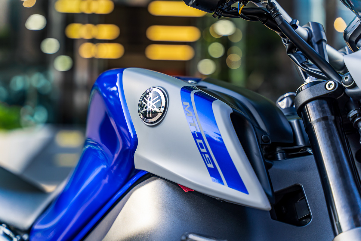 Đặc biệt, MT-09 còn được in chìm logo của dòng xe hypernaked lên bình xăng vô cùng bắt mắt.