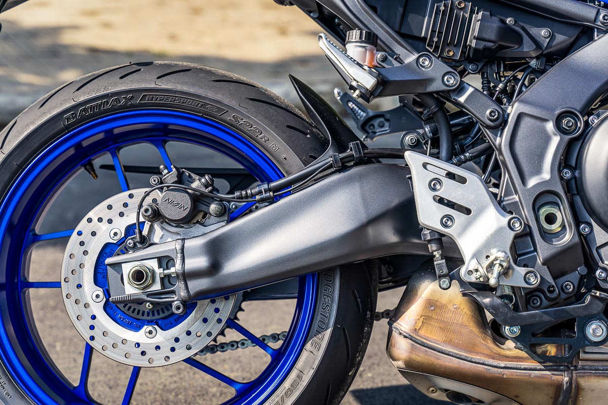 MT-09 sở hữu bộ mâm đúc rèn nhiệt (spinforged wheel) độc đáo của Yamaha. Bộ mâm nhôm 10 chấu được gia nhiệt và tiện để tạo thành phẩm, tạo ra cặp mâm nhẹ hơn 700g, và viền mâm có chỗ chỉ dày 2mm so với 3.5mm so với phiên bản trước. Các nan mâm có đường kính lớn còn giúp tăng độ ổn định cho hệ thống treo. Nhờ bộ mâm xe mới kết hợp cùng với các cải tiến trong động cơ, MT-09 cho hiệu suất tiêu thụ cải thiện đến 9% so với phiên bản cũ, giúp xe di chuyển được xa hơn khi sử dụng bình xăng dung tích tương đương phiên bản cũ 14 L.
