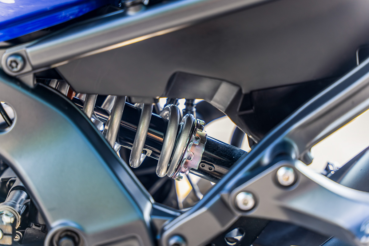 Không thể không để đến hệ thống phuộc KYB cao cấp được tối ưu giúp tăng thêm cảm nhận và khả năng kiểm soát của xe. Cặp phuộc trước hành trình ngược 41mm có thiết kế gọn và cứng hơn phiên bản cũ, cho khả năng tùy chỉnh toàn phần độ cứng, độ đàn hồi và tải trọng, và phuộc sau cho phép tùy chỉnh tải trọng và độ đàn hồi.