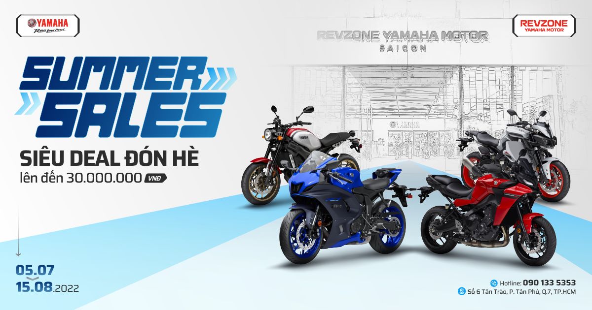 Revzone Yamaha Motor triển khai chương trình “Summer Sales – Siêu đeal đón hè” với nhiều ưu đãi hấp dẫn lên đến 30 triệu đồng, diễn ra từ ngày 05/07 – 15/08/2022.