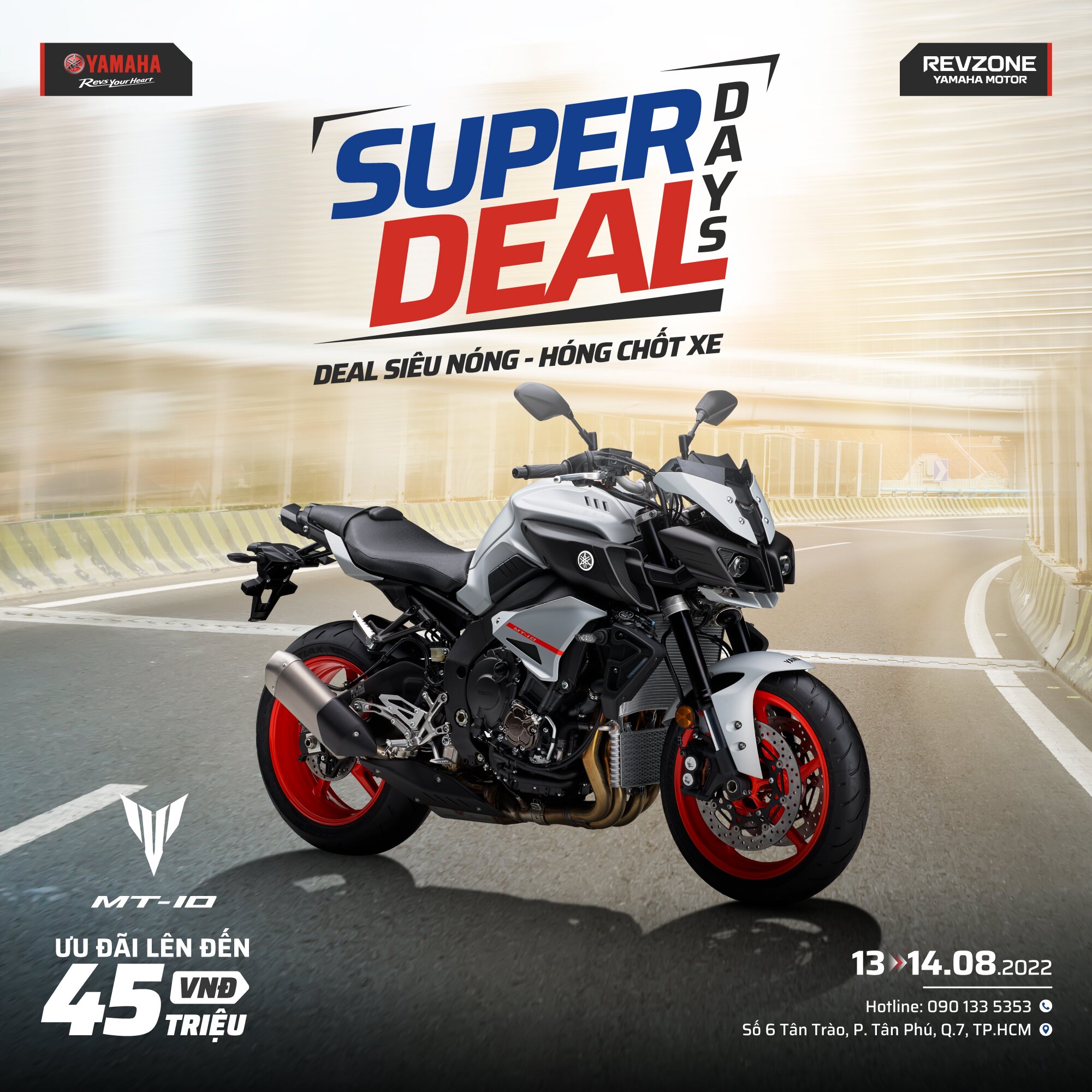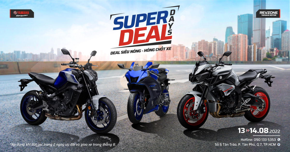 Chỉ trong hai ngày 13 & 14/08/2022, Revzone Yamaha Motor sẽ triển khai chương trình “Special Deal Days” với nhiều ưu đãi và quà tặng hấp dẫn.