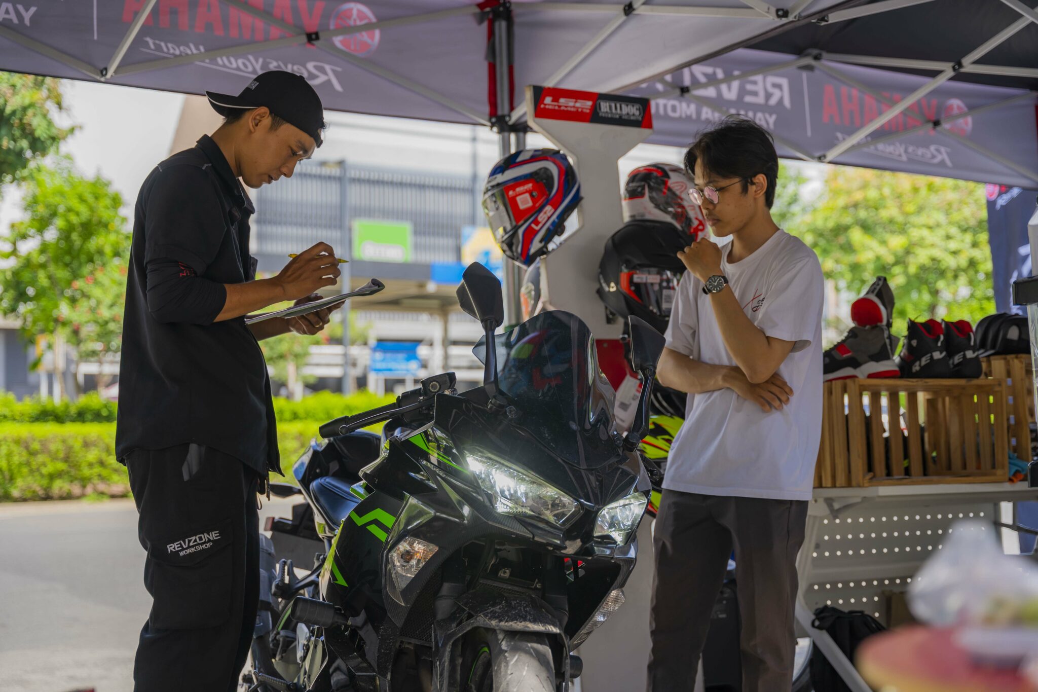 Ngoài việc đăng ký lái thử, quý khách hàng còn có cơ hội mua sắm hàng thời trang và phụ kiện năng động của Yamaha, cũng như trải nghiệm dịch vụ lưu động bao gồm bảo dưỡng nhanh, kiểm tra xe và thay nhớt.