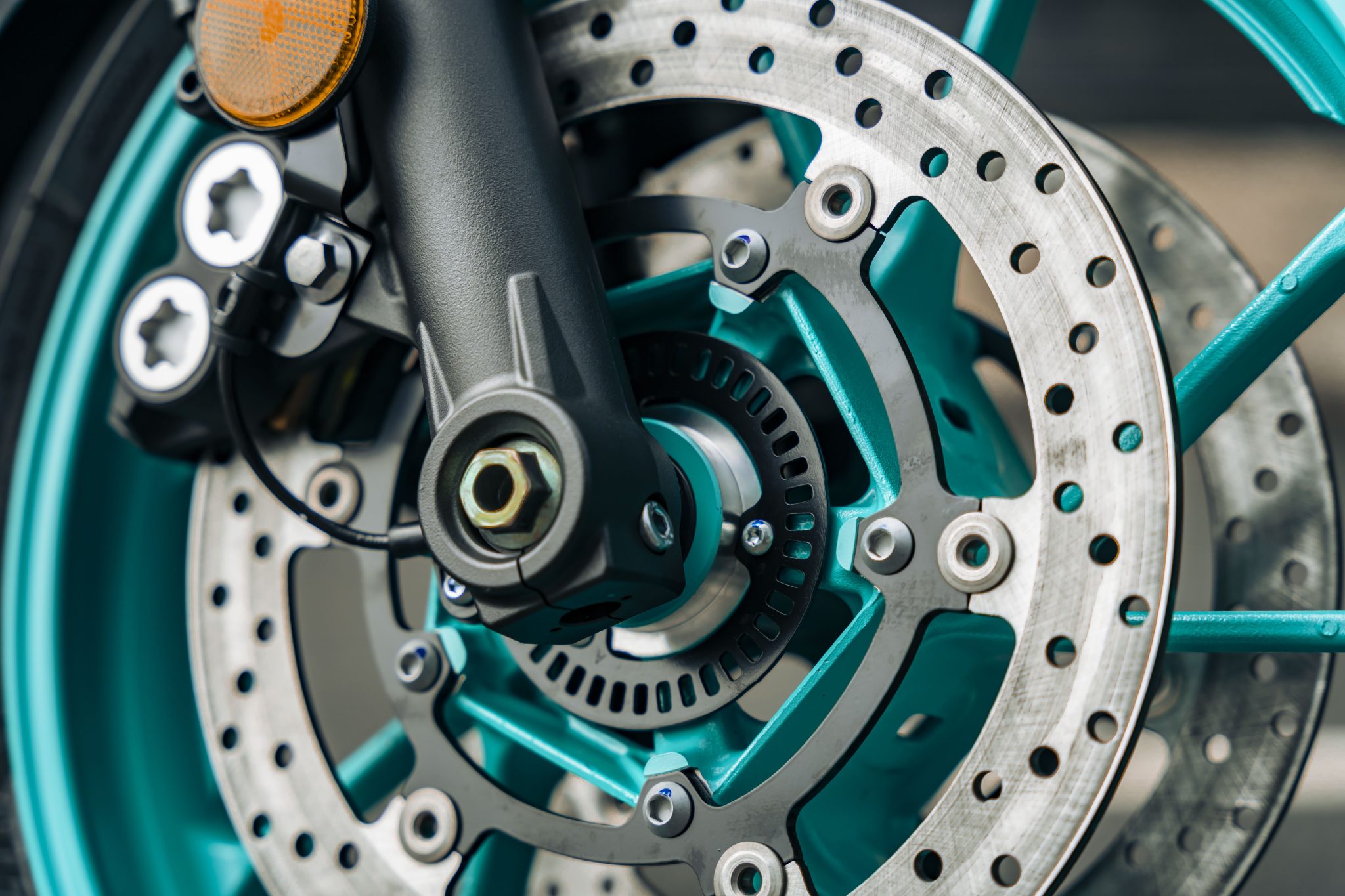 Cặp phanh trước và sau của MT-07 đều được trang bị hệ thống phanh ABS