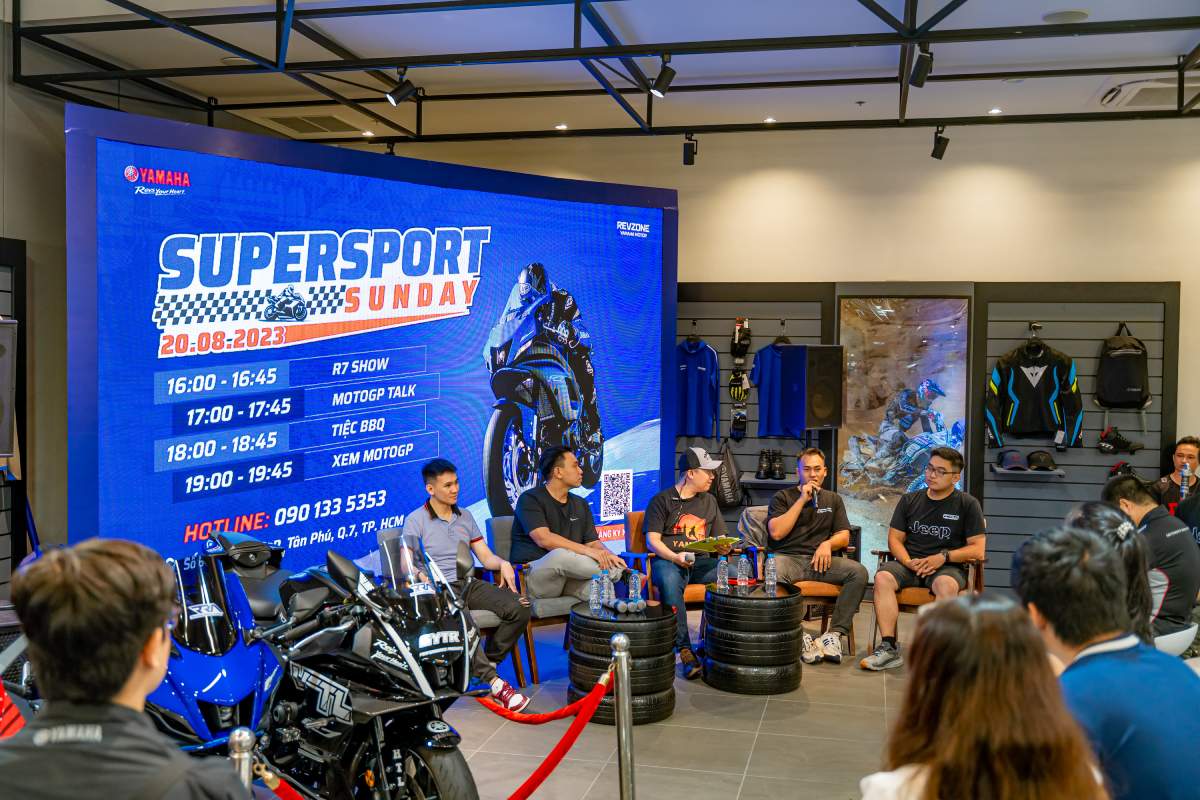Ngày hội SuperSport Sunday diễn ra vào ngày 20/8 vừa qua là một sự kiện độc đáo và hấp dẫn do Revzone Yamaha Motor Saigon tổ chức. Với sự kết hợp tuyệt vời giữa đam mê về dòng xe thể thao Yamaha R7 cùng cơ hội giao lưu, trò chuyện và theo dõi MotoGP dành cho cộng đồng biker.
