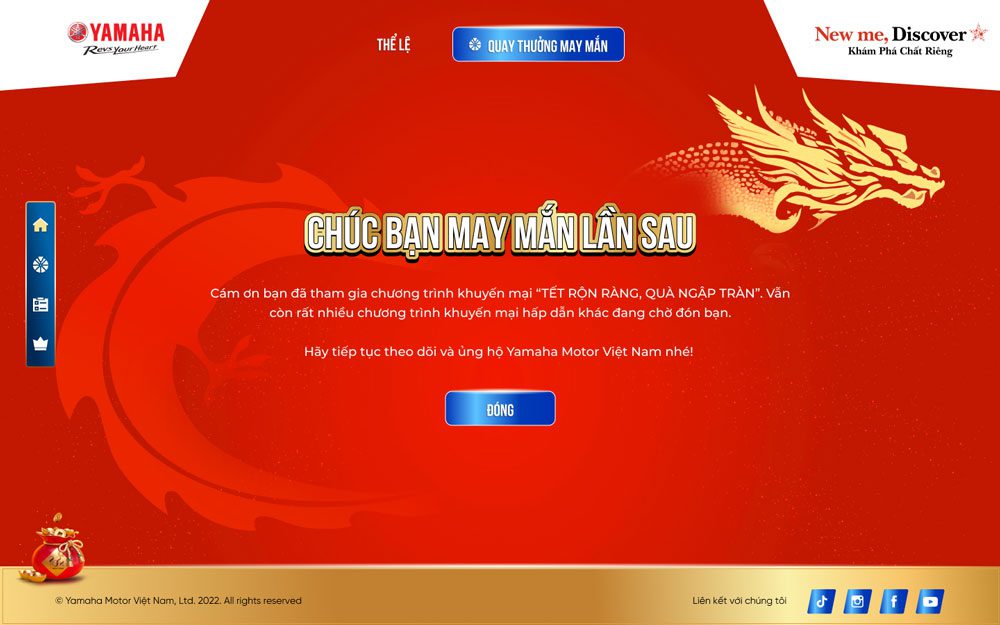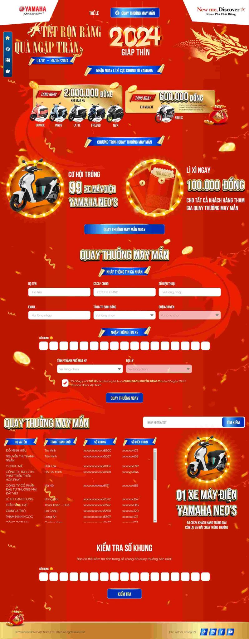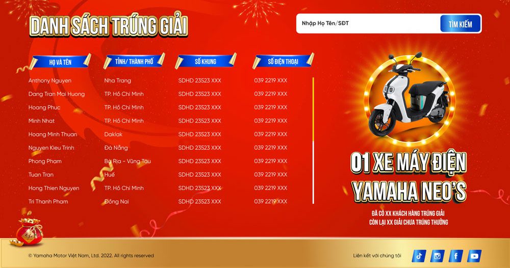 – Địa điểm quay thưởng: Hệ thống website https://quaythuongyamaha.vn