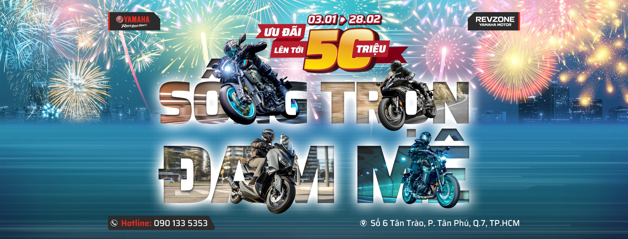 Sẵn sàng cho một năm mới 2023 trọn vẹn đam mê cùng với ưu đãi hấp dẫn lên tới 50,000,000đ từ Revzone Yamaha Motor.