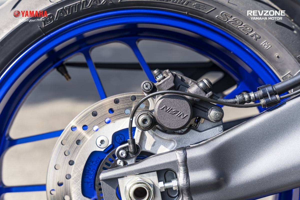 Cuối cùng, phần dàn chân của xe trang bị hệ thống phanh hướng tâm, với bộ kẹp phanh Advics 4 piston và hai đĩa phanh kích thước lớn 320mm ở phía trước. Xe sử dụng lốp Bridgestone Battlax Hypersport S22 với độ bám đường tuyệt vời, được lắp đặt trên cặp mâm đúc rèn nhiệt hoàn toàn mới.